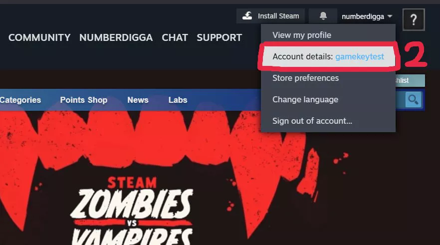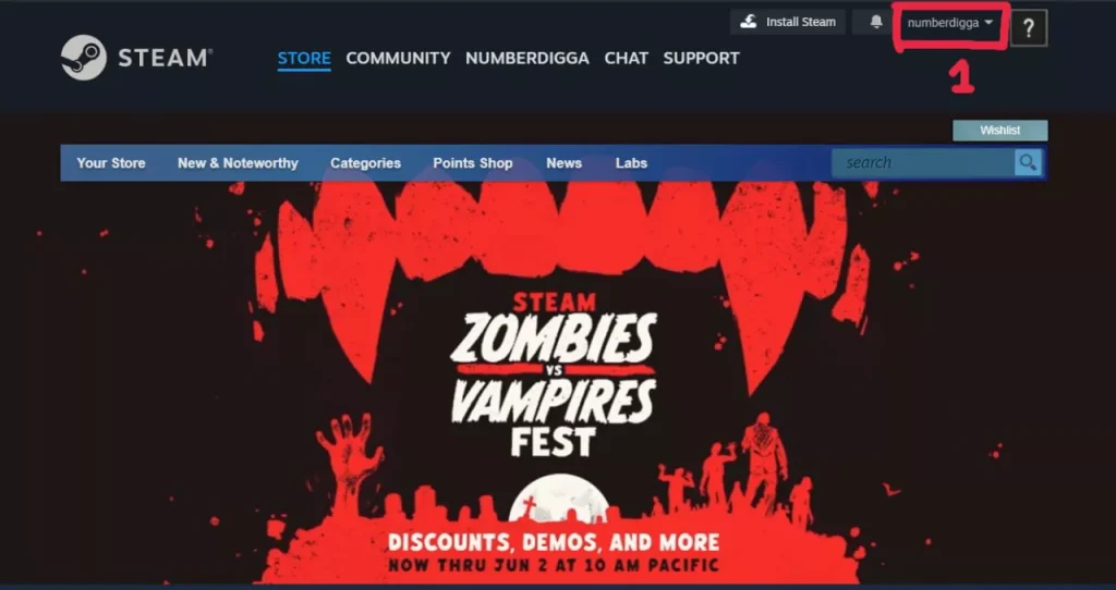 ابتدا وارد سایت store.steampowered.com شوید و روی نام کاربری خود در بالای صفحه کلیک کنید.